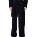 ワイドカーゴパンツ。オーストラリア産ファインメリノウールとリサイクルポリエステルを使用したウールトロピカル。接触冷感による着心地の良さ、防シワ性能も持ち合わせており、しなやかさと程よい膨らみ感のある風合いに仕上げた2WAYストレッチ素...