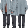 77%コットン、33%シルク。ジップアップ。比翼フラップ。ラグランスリーブ。後ろ身頃裏に布パッチ。左袖上部にシリコンパッチ。前身頃にベローズポケット。チンストラップ。袖口にゴム、ストラップ。ワイドシルエット。オーバーダイウォッシュ加...
