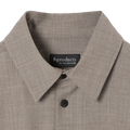 ミドルシャツ。オーストラリア産ファインメリノウールとリサイクルポリエステルを使用した機能的ウールトロピカルです。着心地の良さ、防シワ性能も持ち合わせており、しなやかさと程よい膨らみ感のある素材に仕上げた 2WAYストレッチ素材です。混紡糸にポリウレタンを入れたことで伸縮性に優れているシャツ。ナチュラルな風合いでゆったりとしたシルエットとなっています。程よい身幅とアームホールが広い為、リラックス感があります。